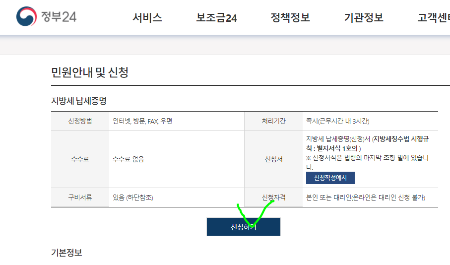 정부24에서 지방세 납세증명 클릭