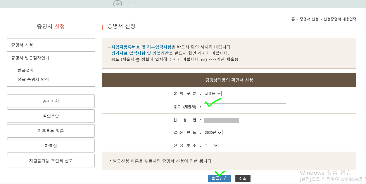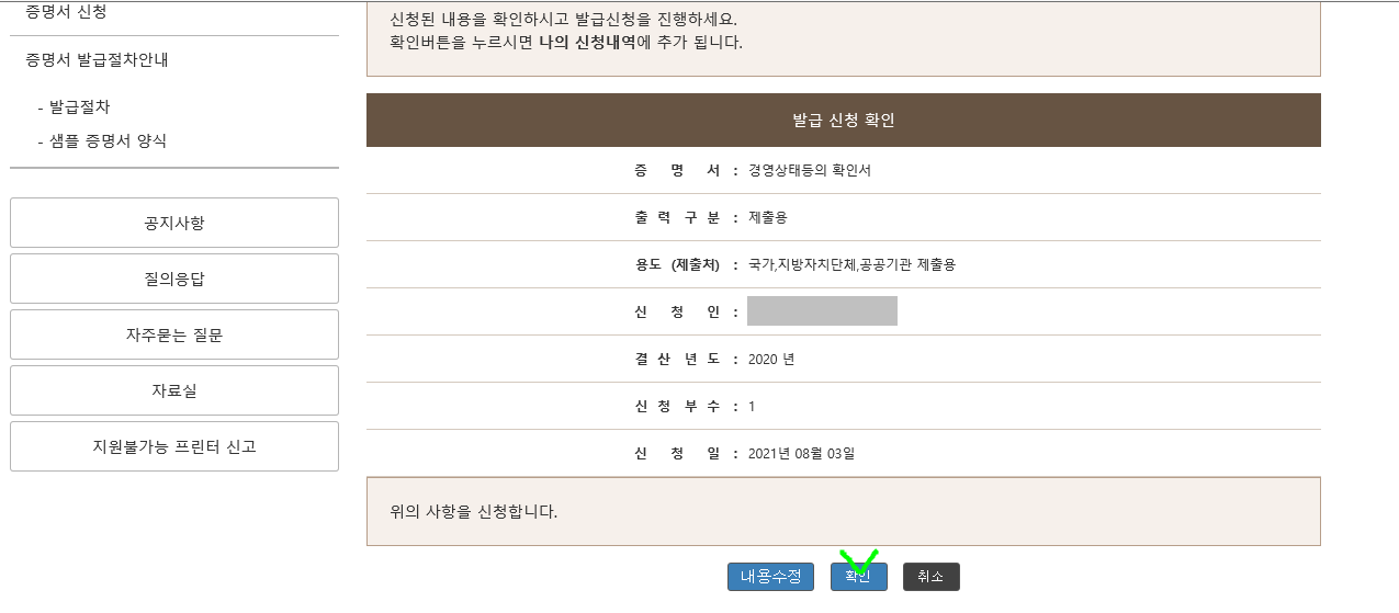 오늘은 경영상태등의 확인서 클릭(정말 급한날은 이것도 잘 안보인다는 ㅠㅠ)