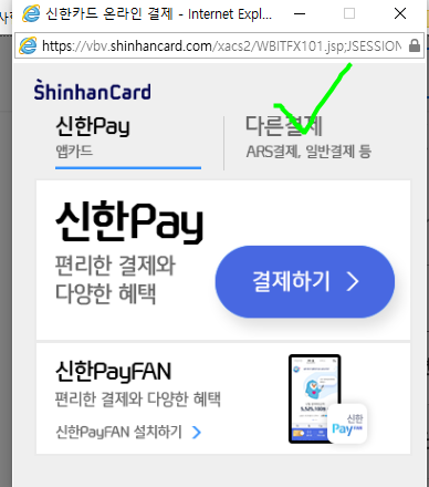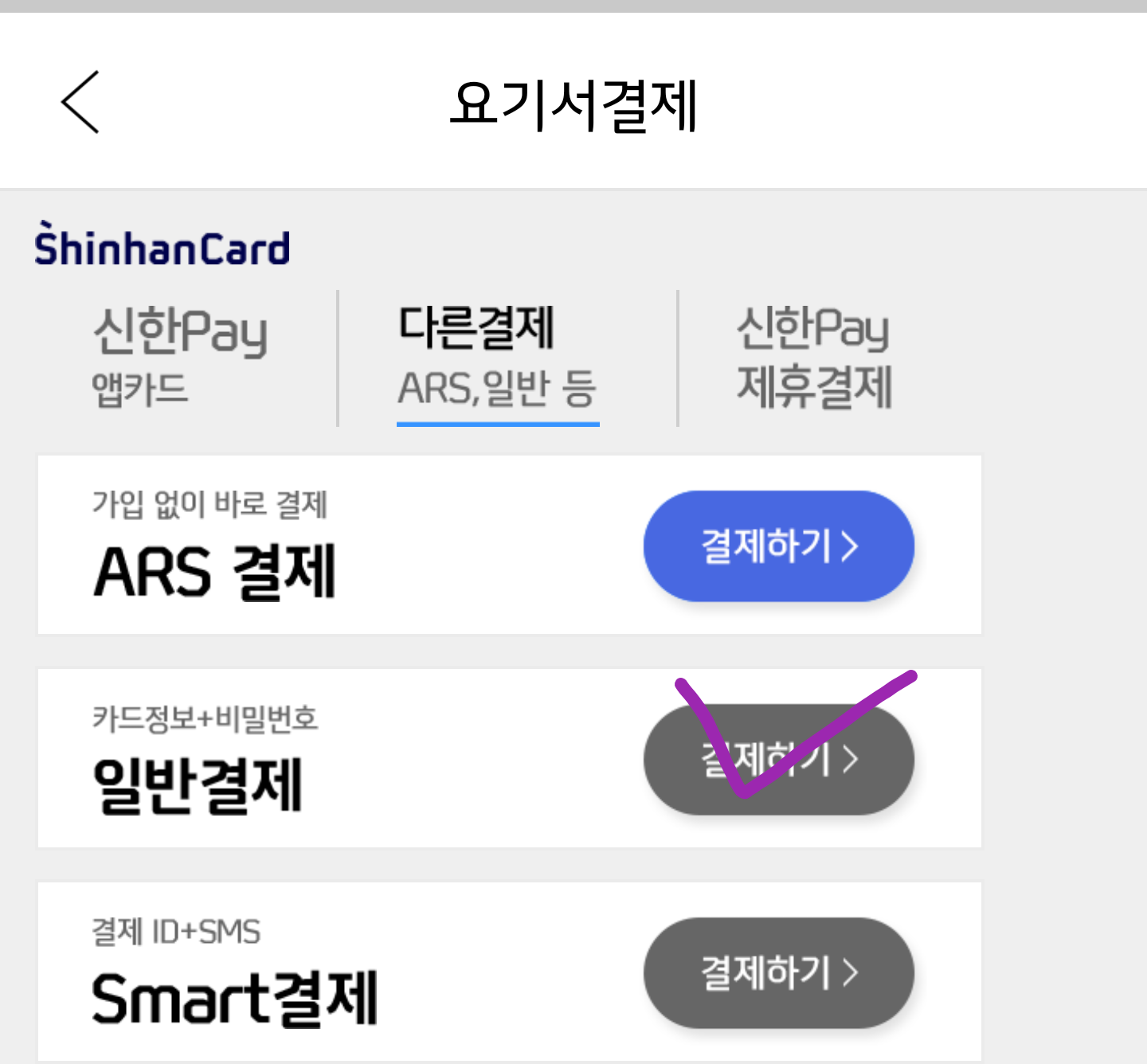 위에서 두번째 일반결제 옆에 결제하기 클릭