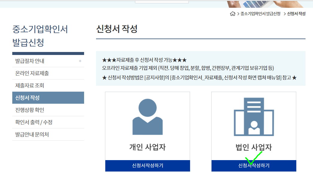 중소기업확인서 발급하기