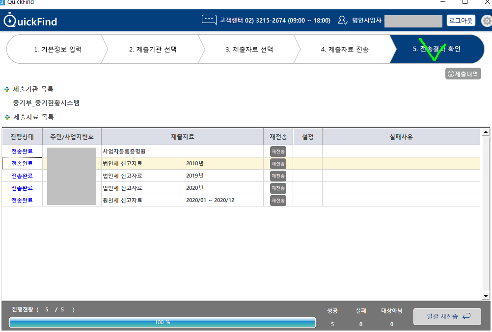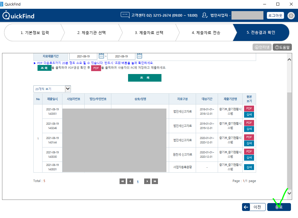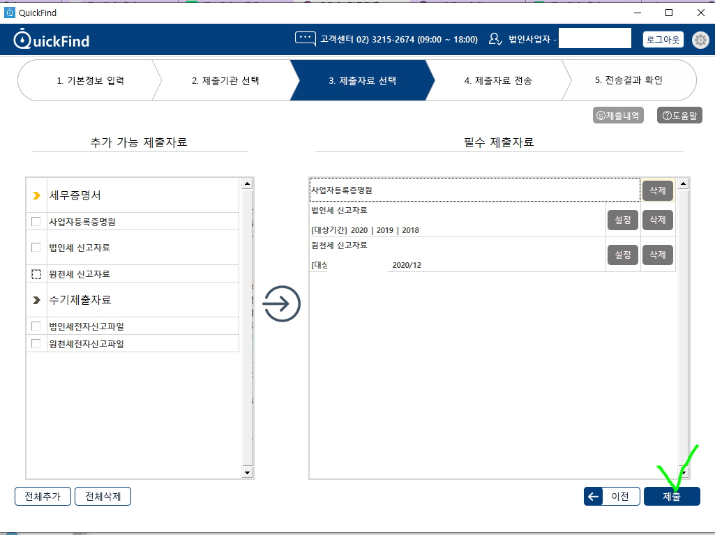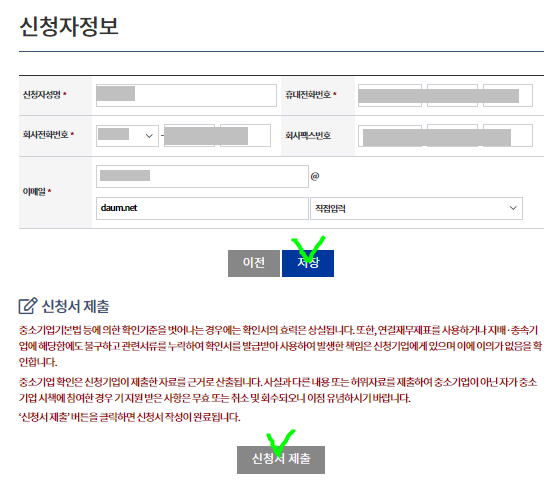 신청자 정보 확인후 저장 하고 신청서 제출 클릭
