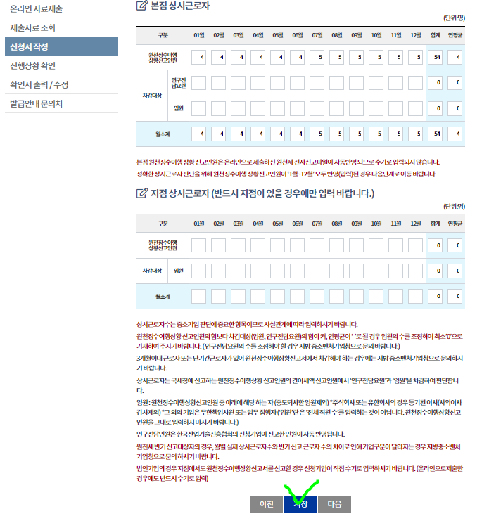 상시근로자수 확인후 저장클릭