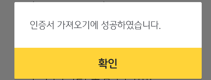 스마트폰에서 인증서 가져오기에 성공하였습니다. 화면이 뜨면 확인 클릭