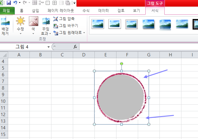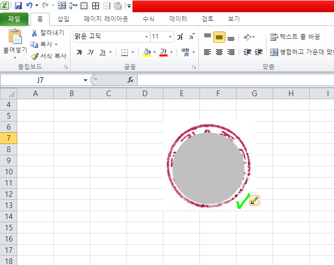 도장모양이 엑셀에 입력이 되면서 엄청 크게 나오는데 저 동그란 부분(초록체크한 부분)을