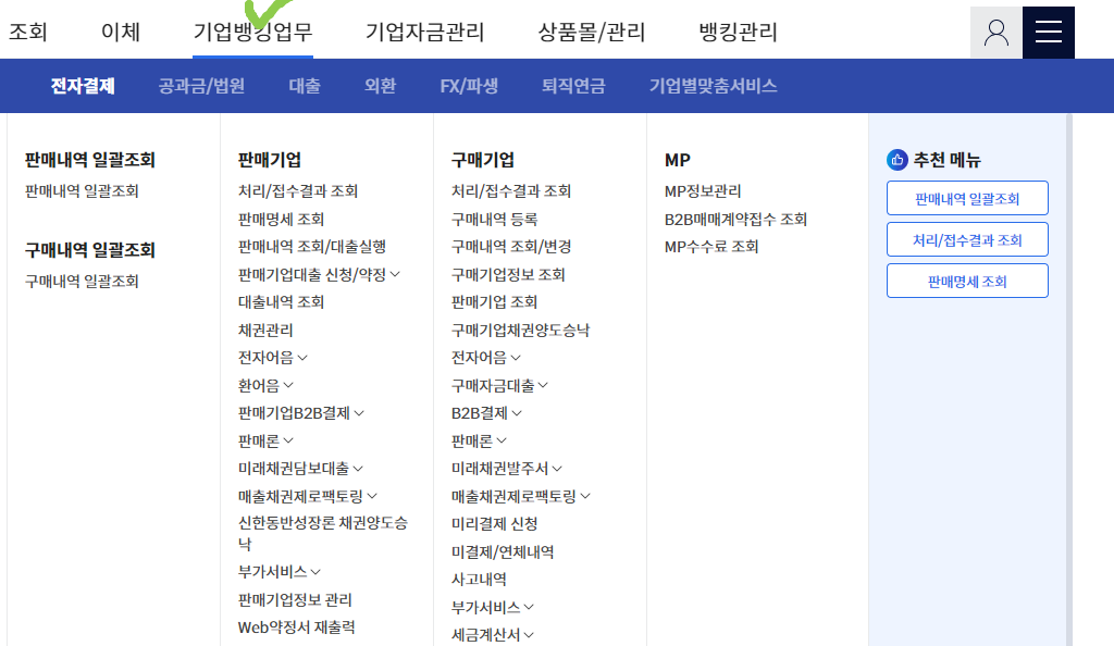 기업뱅킹업무 클릭