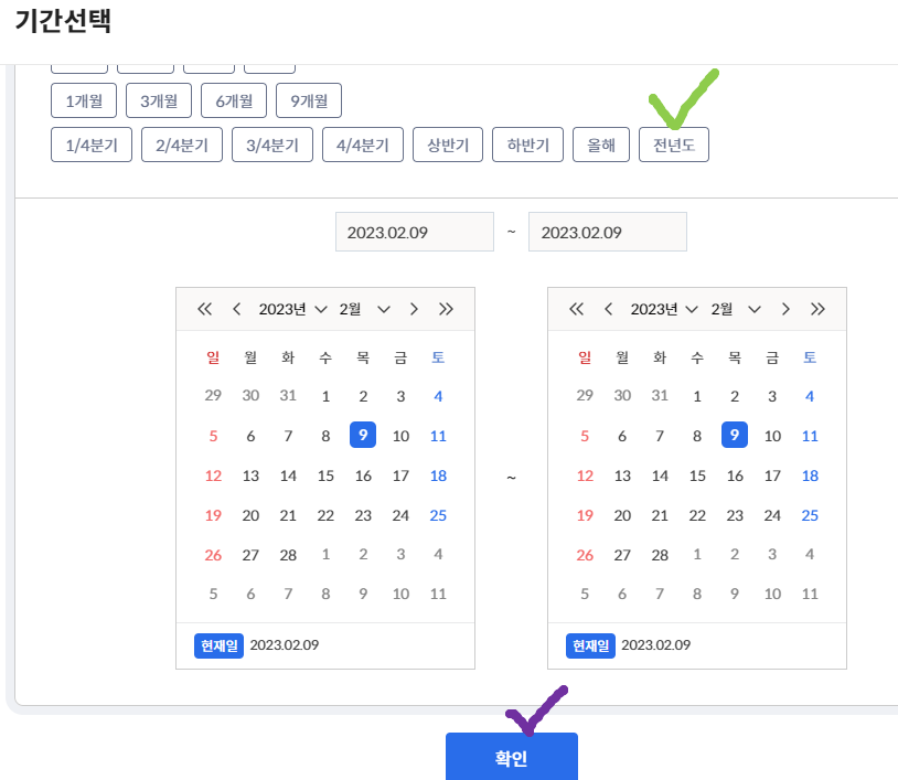 팝업창에서 전년도 클릭-- 확인