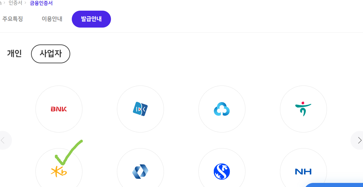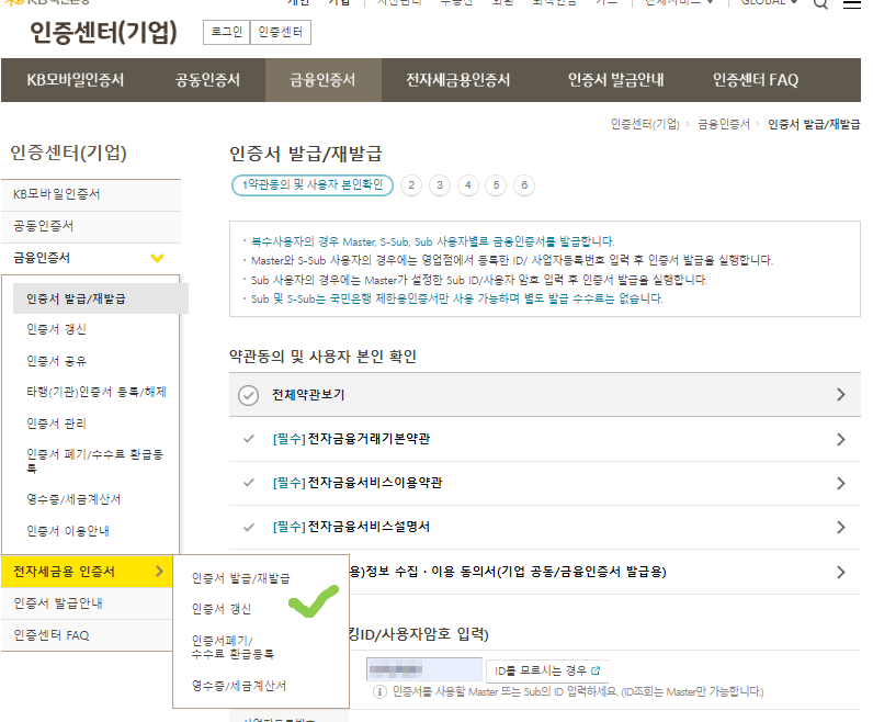 개인사업자의 세금계산서용 공동인증서 갱신하기(국민은행)