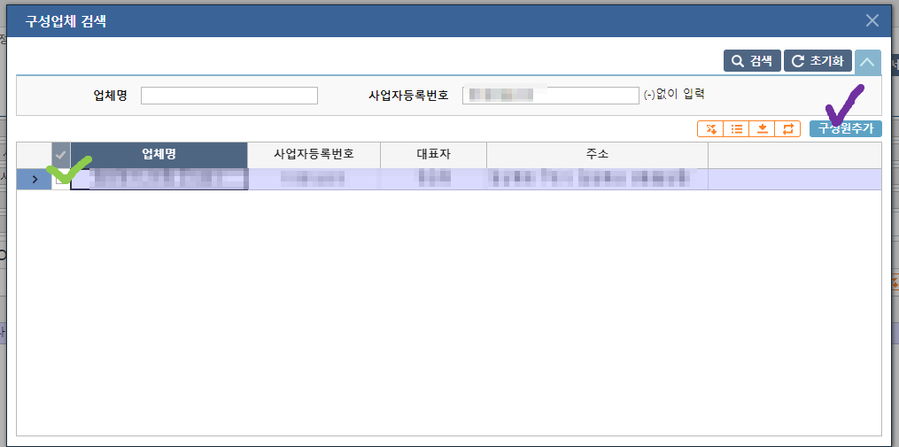 업체명이 뜨면 구성원 추가 클릭