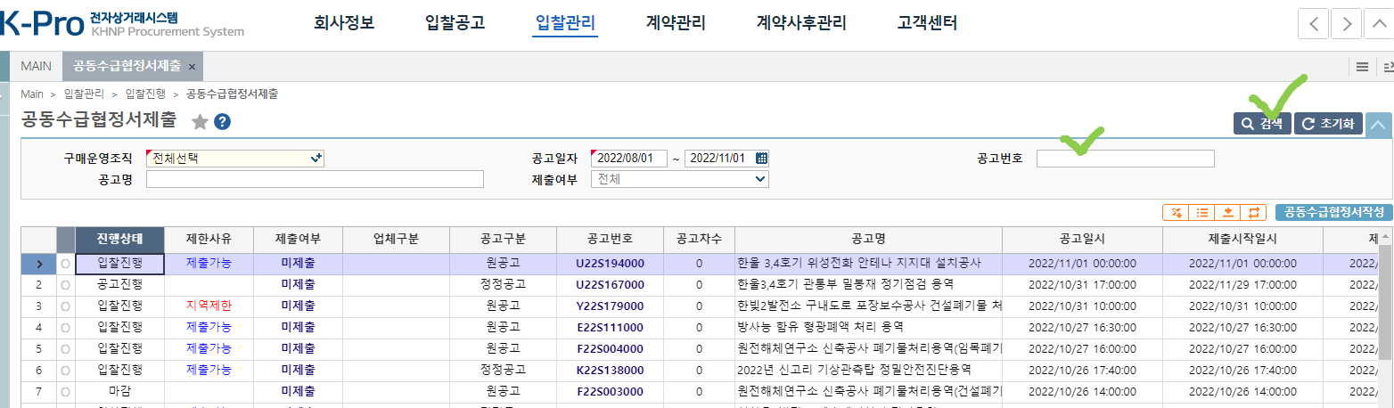 공고번호 입력하고 검색 클릭