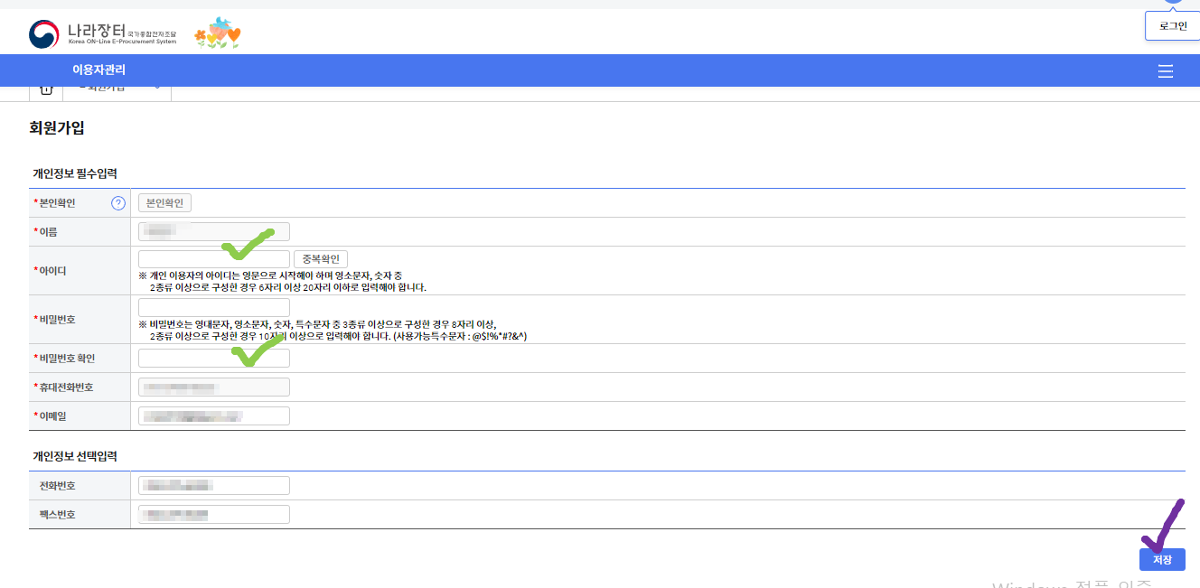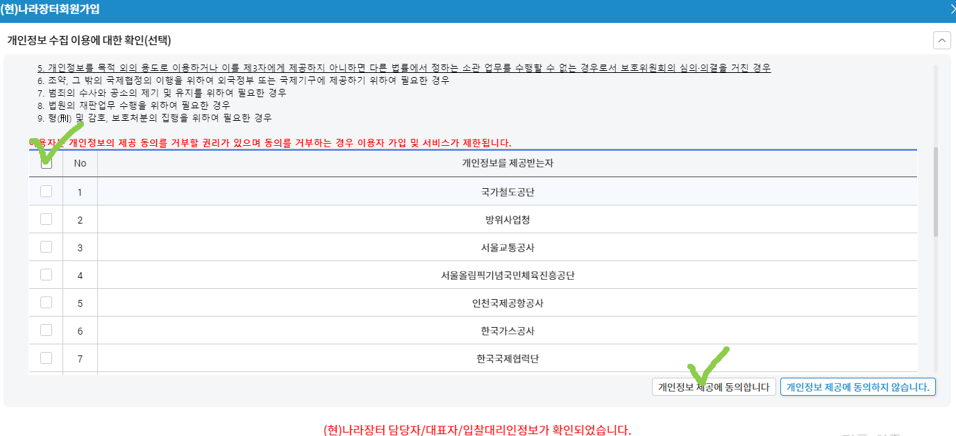 이전 나라장터 가입정보 를 확인후 클릭 아래로 내려 보시면