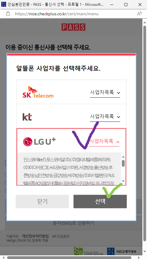 저는 문자가 편해서 문자받기로 하고 문자인증번호 입력후 확인
