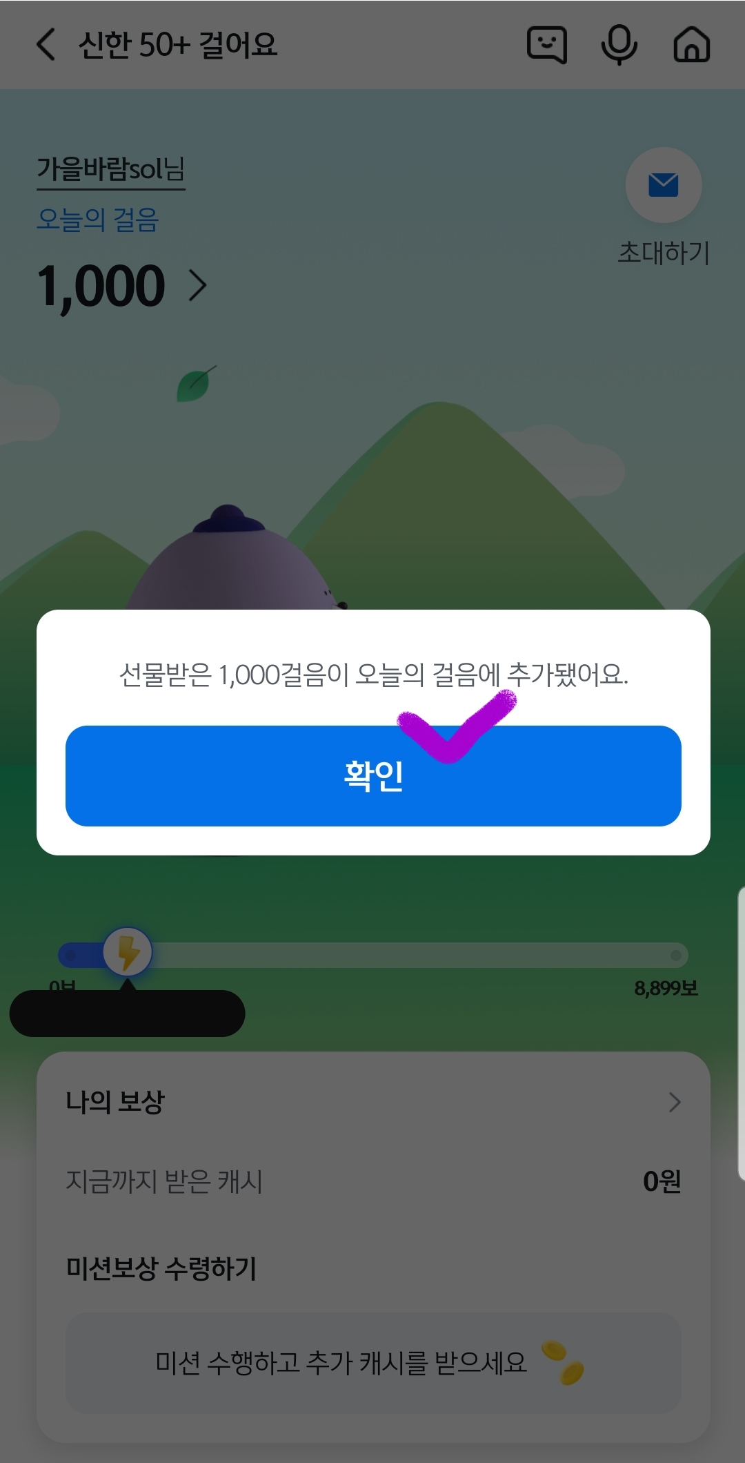 입력하면 1000걸음준다고 하네요.ㅋㅋ